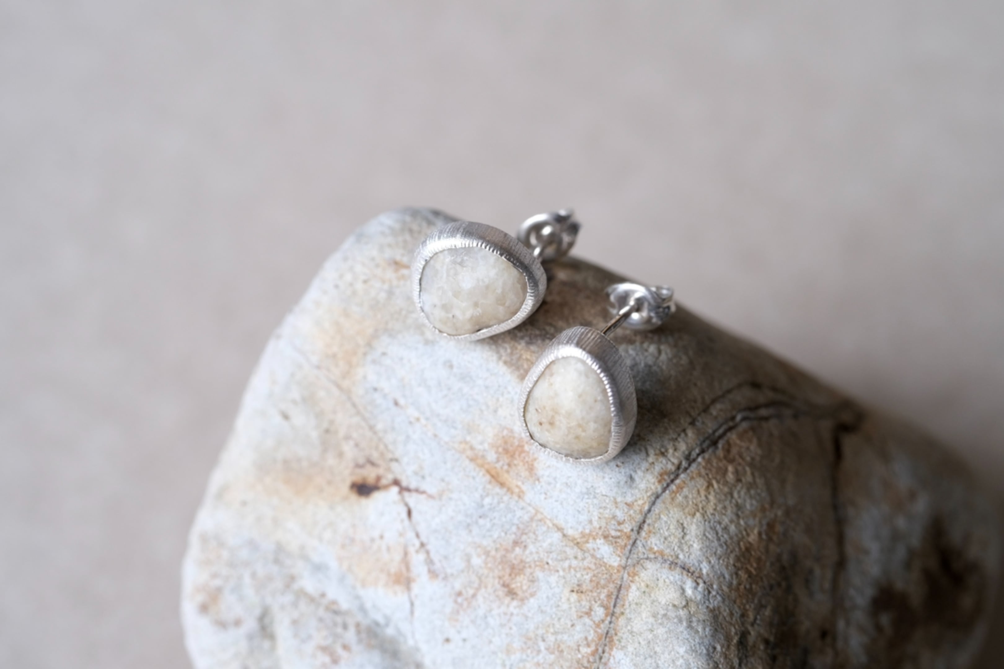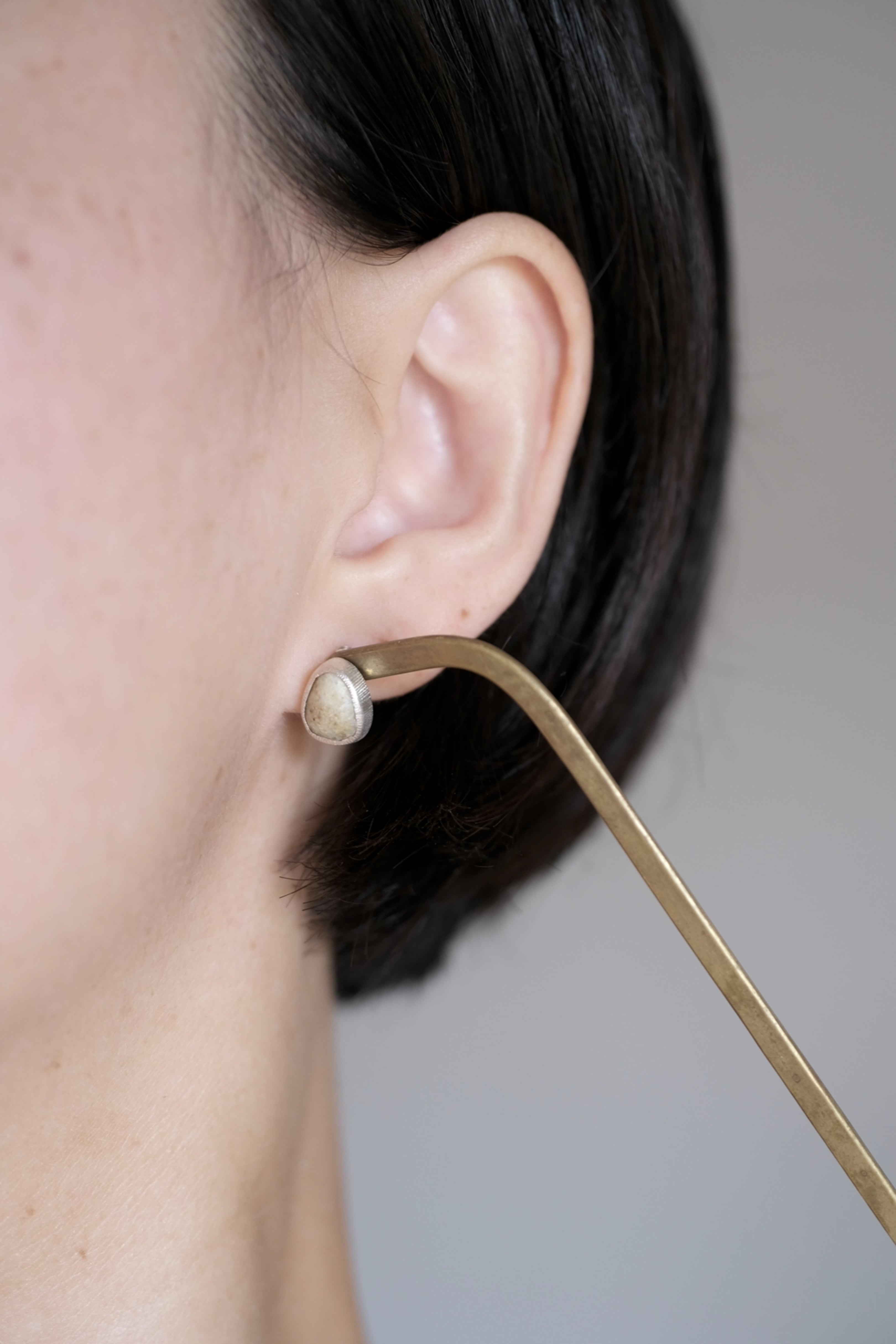 こちらは石がうずらの卵のようでころんとして可愛く、シンプルなテクスチャーをつけたピアスです。