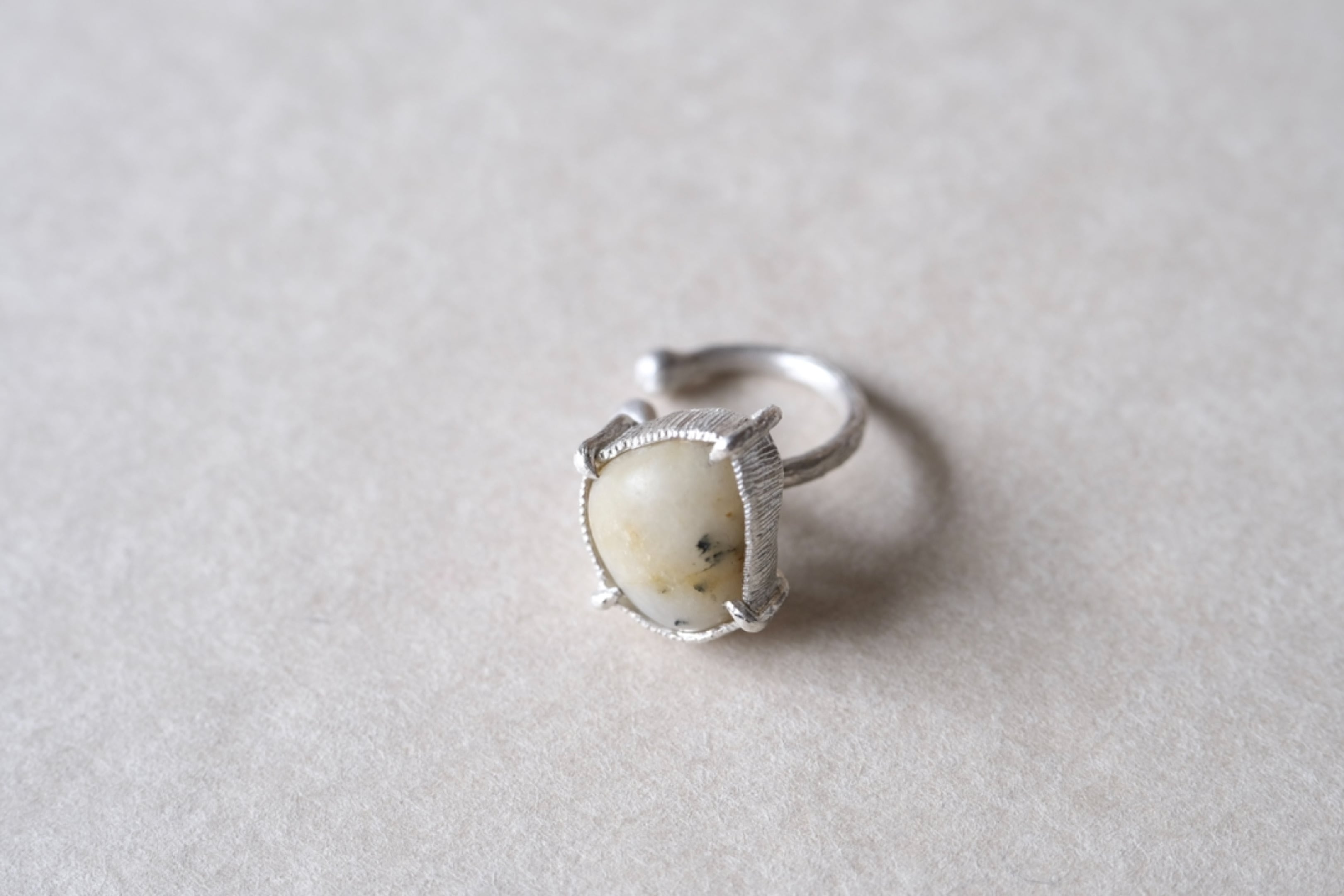 この海の石シリーズは、ひとつひとつ地金で石に合わせて枠を作っています。