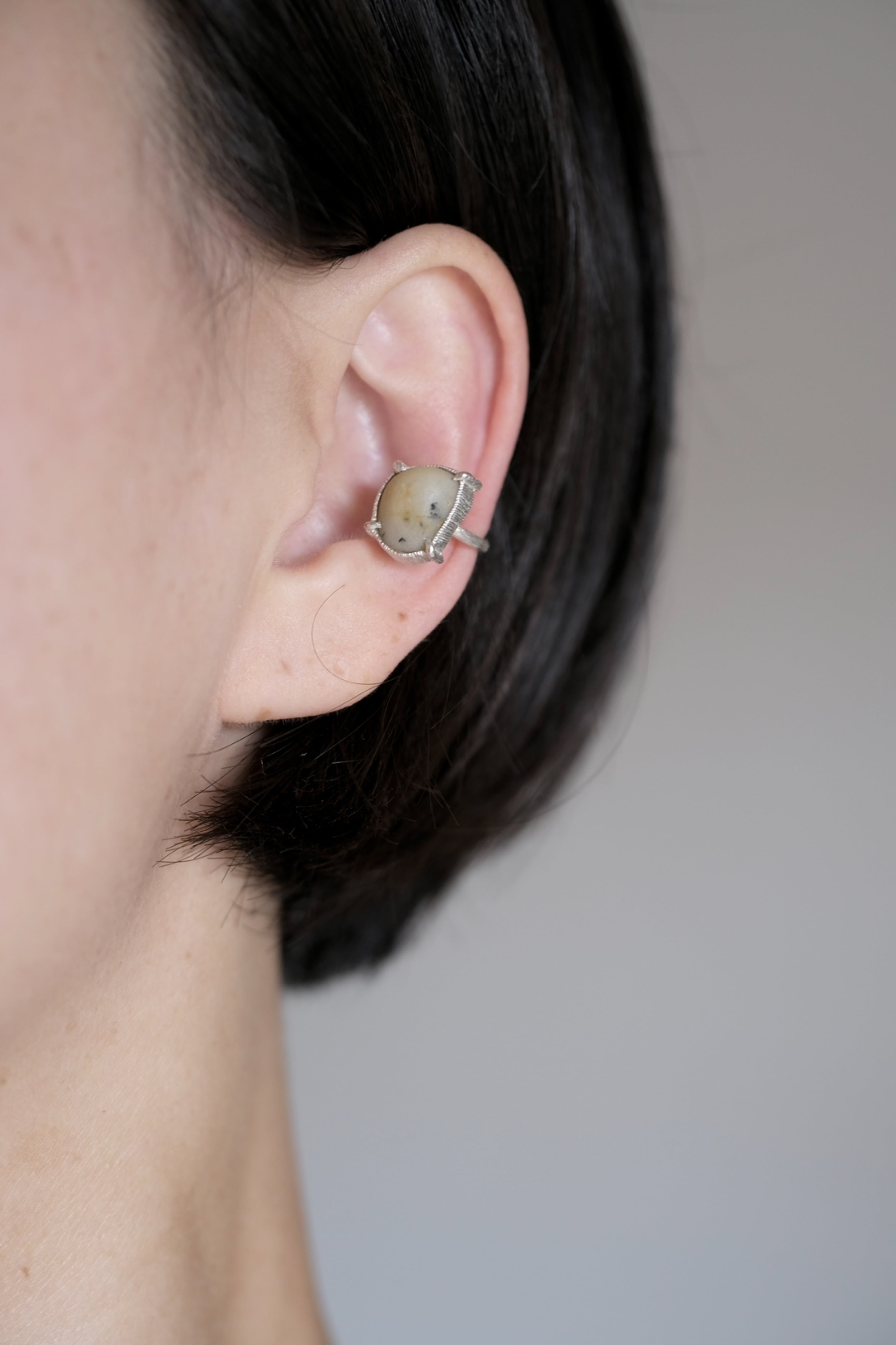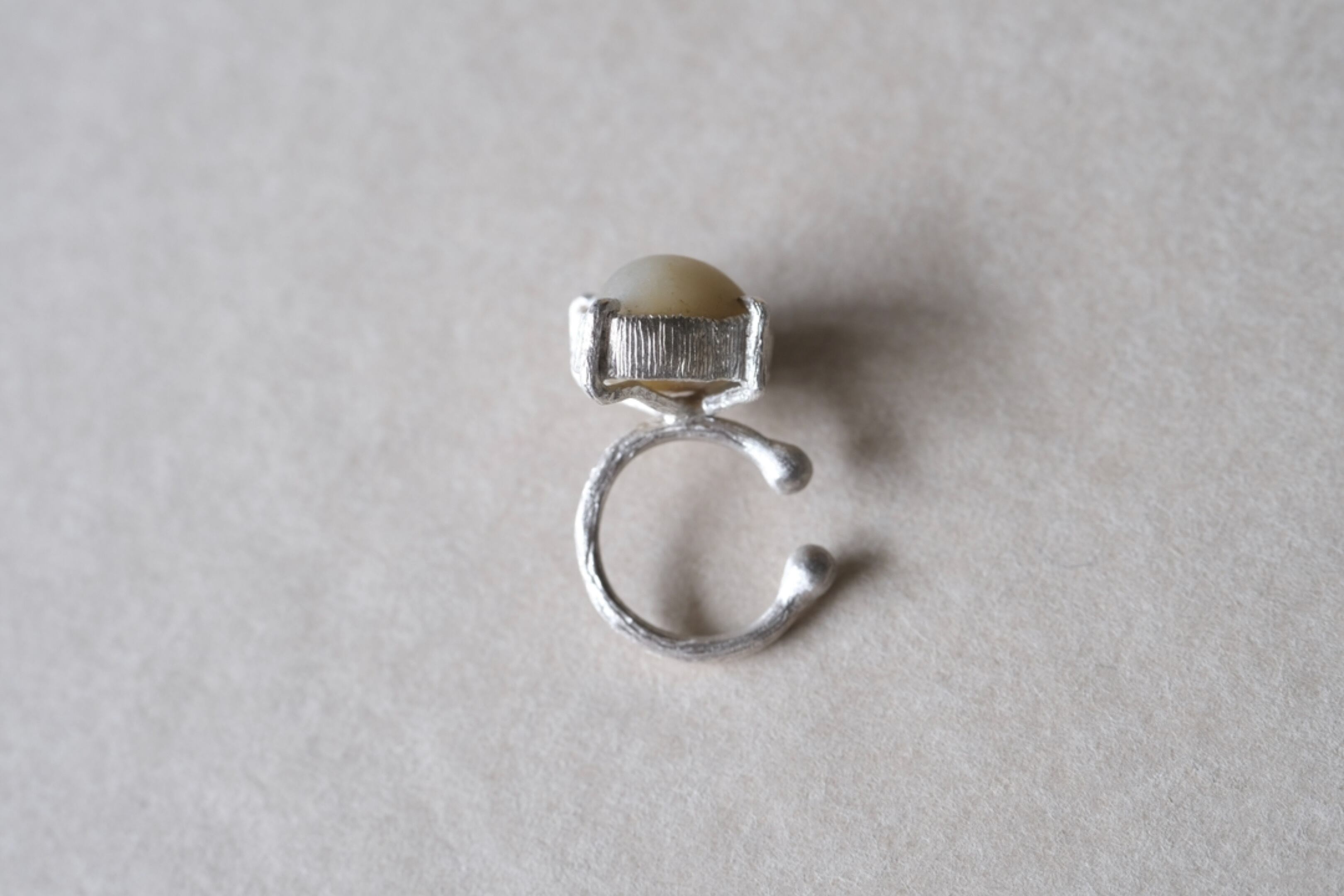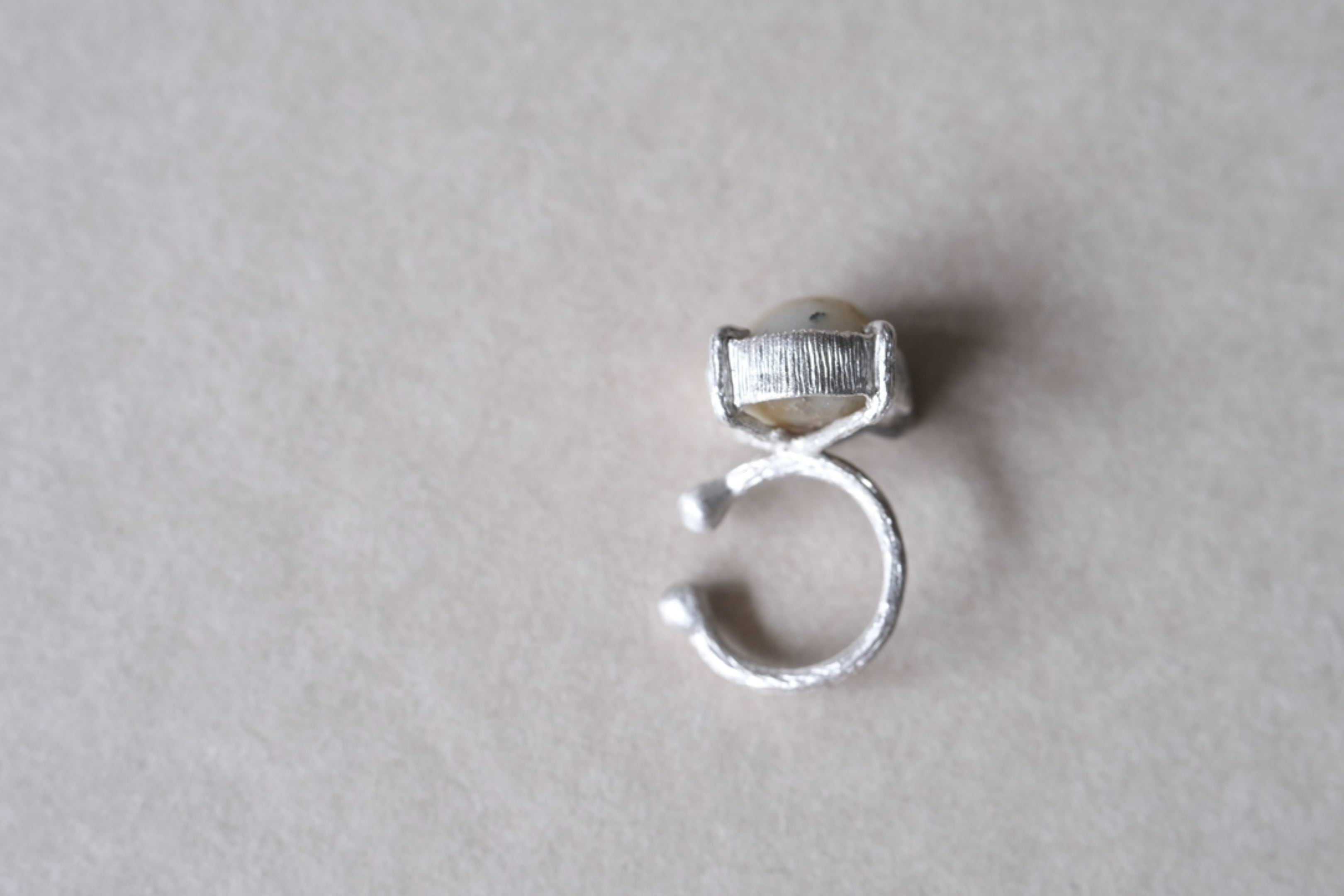 こちらは石の模様が蝶のようだったので、木目をつけ、優しいラインに仕上げたイヤーカフです。