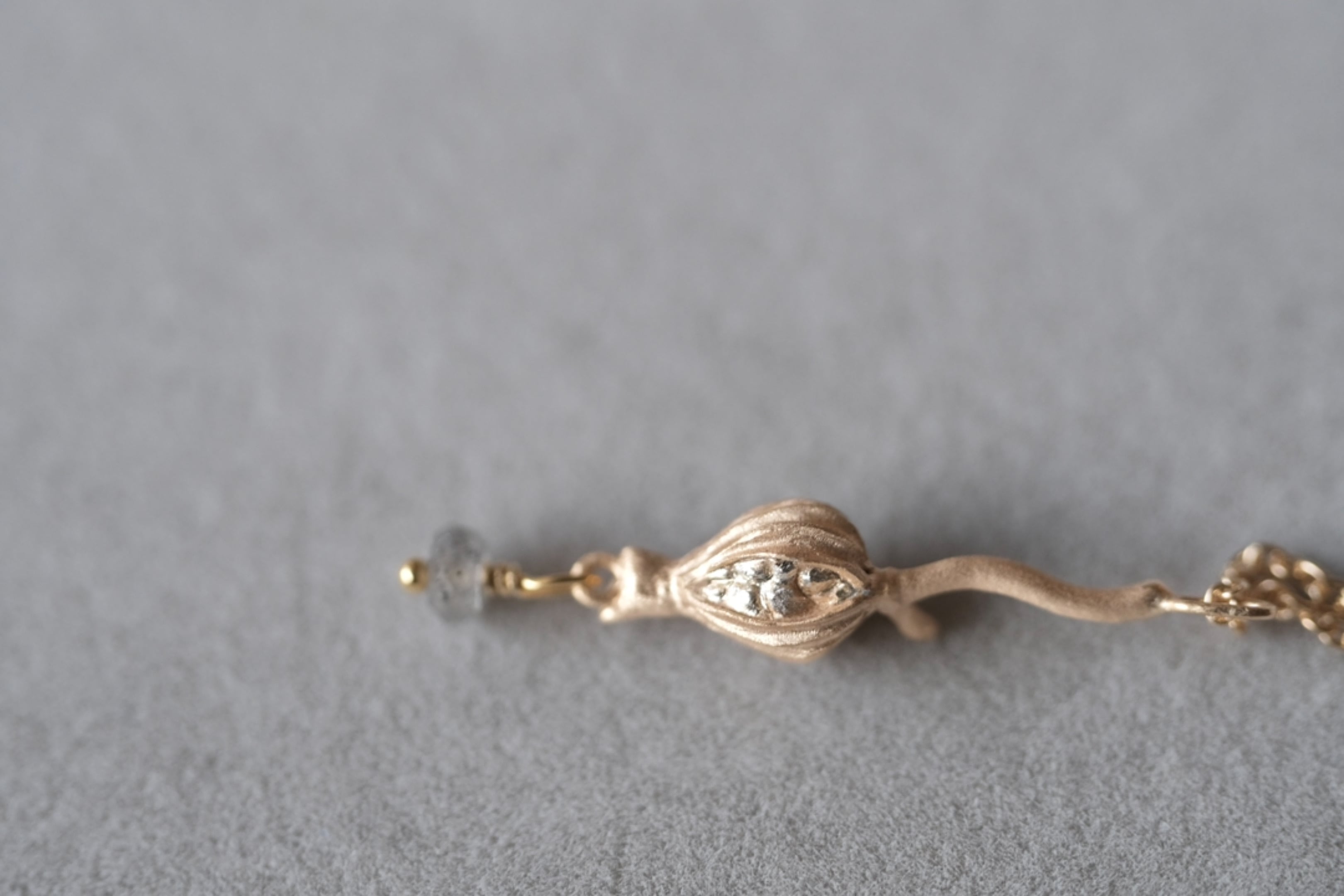 乾燥して、ひとつぶ種が落ちてしまった実をイメージして作りました。